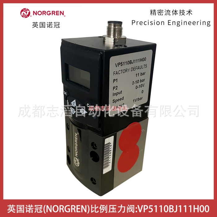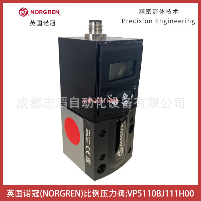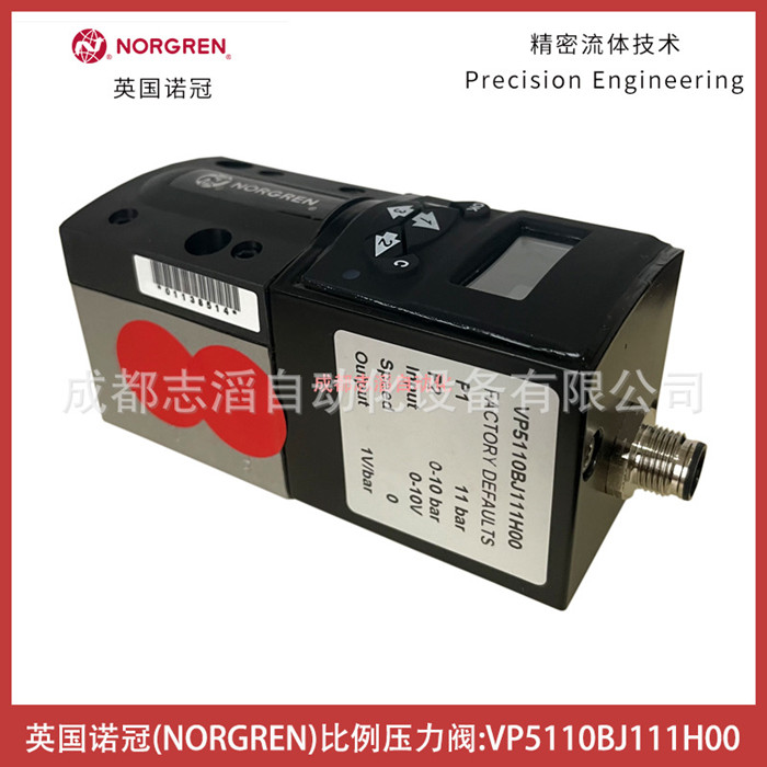 VP5110BJ111H00英国诺冠比例压力阀NORGREN气动控制元件技术参数简介:控制信号0-10V、输出压力0-10bar、产地为捷克、由于本款压力比例阀所需使用空气的质量比较高,处理精度需要达到5um!不然会使其使用寿命减短!