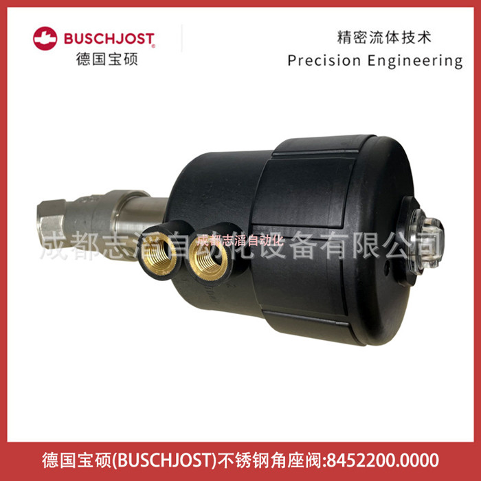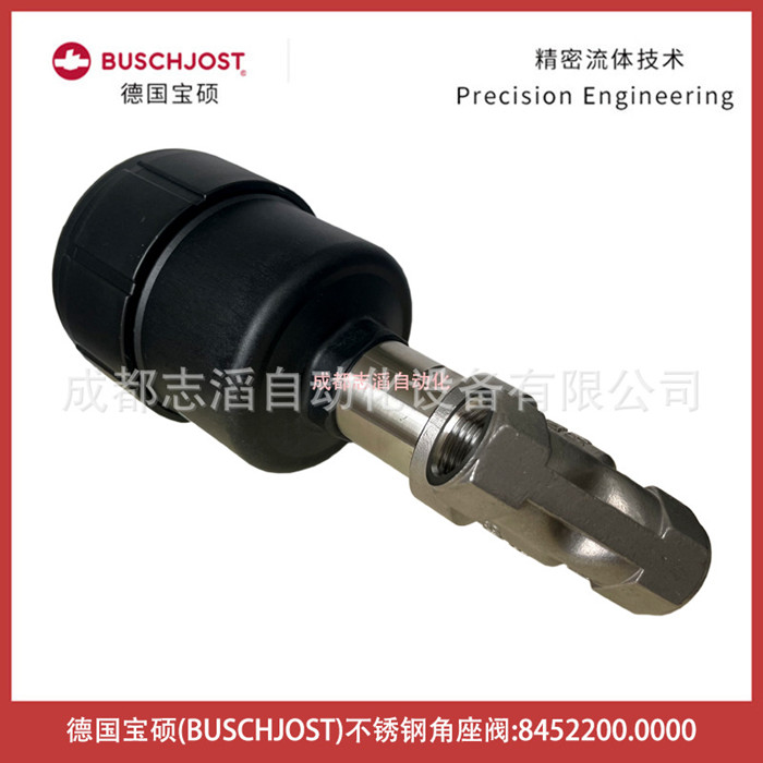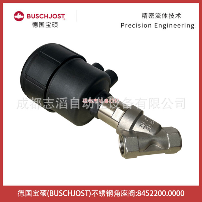 8452200.0000德国宝硕BUSCHJOST不锈钢角座阀-气动控制元件技术参数简介:接口尺寸G1/2、通径15mm、流量4.8立方米/小时、工作压力0-16bar(0-232PSI)、重量1.4kg、环境温度-10到60摄氏度、流体温度-10到180摄氏度、介质中性气体或者液体、切换功能常闭、按照位置可选、先导压力3.5-10bar、主体材料不锈钢、密封面PTFE、产地德国、货期10-12周