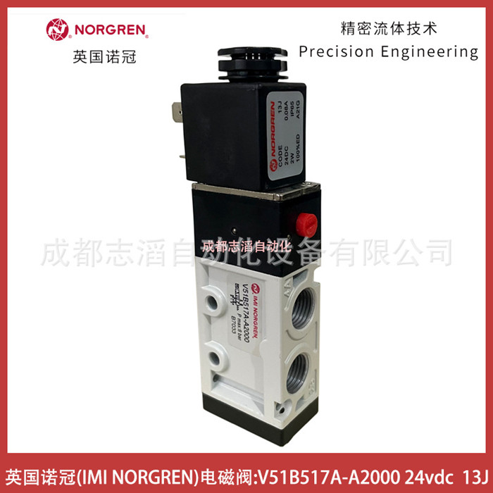 V51B517A-A2000线圈13J电压24VDC英国诺冠NORGREN电磁阀技术参数简介:功能2位5通、接口G1/4、排气孔G1/8、驱动方式电控/弹簧复位、工作压力2-8bar、流量1020升/分钟、手动功能按下旋转锁定、阀体重量0.184kg、线圈电压24VDC、功耗2瓦、环境温度-5到60摄氏度、流体温度-5到50摄氏度、介质压缩空气、现货、产地中国