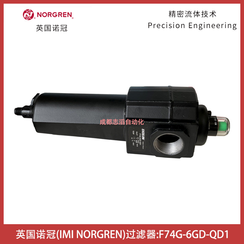 F74G-6GD-QD1英国诺冠Excelon模块式系统F74G通用型过滤器技术参数:气口尺寸G3/8、流量83l/s、维修件4380-700、滤芯型号4338-01(过滤精度为5um)、产地为墨西哥!带机械式滤芯寿命指示器、排放方式为手动1/4圈、滤杯为带液位指示器的金属杯!