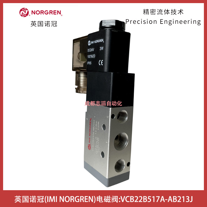 VCB22B517A-AB213J线圈13J电压24VDC英国诺冠(IMI NORGREN GUARDIAN)电磁阀技术参数简介:B=阀宽22mm、代码5=功能2位5通、代码17=驱动方式电控/电控、A-A=线圈22mm电磁线圈、B=螺纹G1/4(限22mm)、介质环境温度范围-5到70摄氏度、流量1050l/min、先导供气为内先导、工作压力1.5-8bar、2=手动控制推出旋转并锁定、