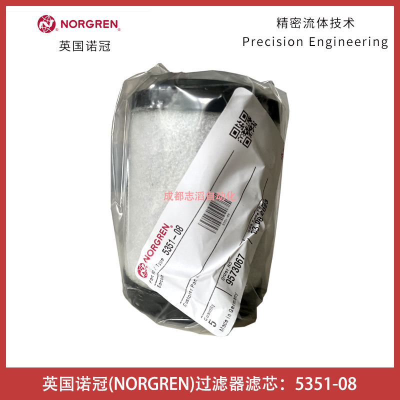 5351-08英国诺冠(NORGREN)过滤器滤芯简介:产地德国、货期10-12周, 诺冠(NORGREN)-1925年-由草图变现实,从厨房到世界:1925年,卡尔诺冠在丹佛市他自己的厨房里绘制出了全世界di一只润滑器的设计草图以建立空气处理设备业务,于是这个故事再也没有停止,他设计的不仅仅是一个元件而是缔造了属于空气处理技术的一整个“元宇宙”;