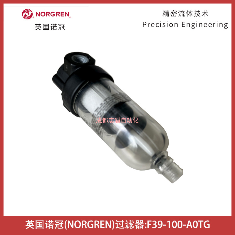 F39-100-A0TG英国诺冠(NORGREN)过滤器技术参数简介:接管口径G1/8、流量2.8l/s、滤杯材料玻璃、维修包型号4141-10、环境及流体温度范围-30到+65摄氏度、工作压力可达10bar、产地墨西哥、