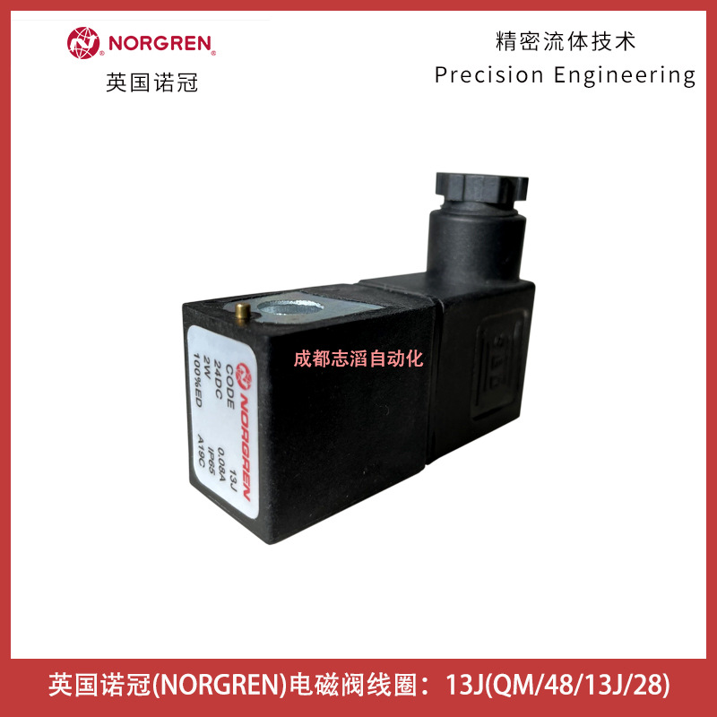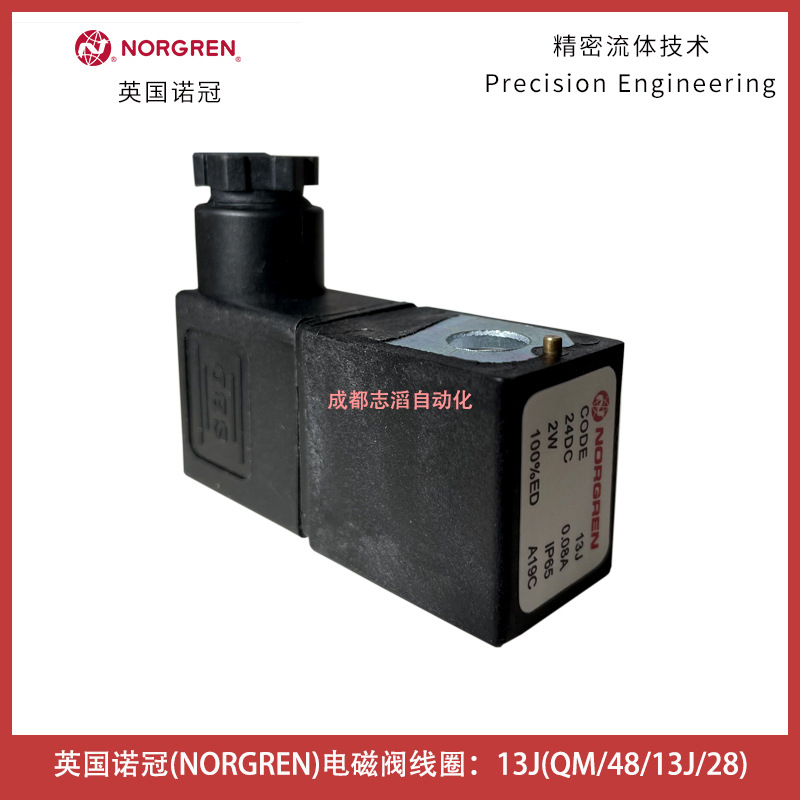 13J英国诺冠(IMI NORGREN)电磁阀24V直流线圈QM/48/13J/21技术参数及应用:主要适用于英国诺冠电磁阀V51、V52、V53、V61、V62、V63、SXE9573、SXE9574、SXE9575系列!电流为0.08A、功率为2W、防护等级IP65、产地为中国!