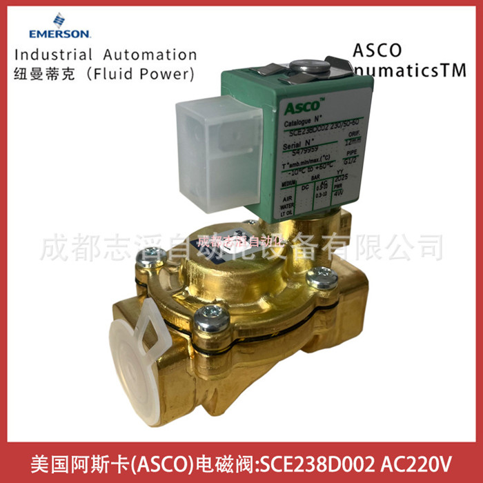 SCE238D002线圈230/50-60电压AC220V美国阿斯卡ASCO电磁阀技术参数简介:接口尺寸G1/2、流通通径12mm、环境及流体温度范围-10到+60摄氏度、工作压力范围0.3-10bar、线圈电压AC220V、线圈功率4瓦