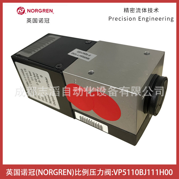 VP5110BJ111H00英国诺冠比例压力阀NORGREN气动控制元件技术参数简介:控制信号0-10V、输出压力0-10bar、产地为捷克、由于本款压力比例阀所需使用空气的质量比较高,处理精度需要达到5um!不然会使其使用寿命减短!