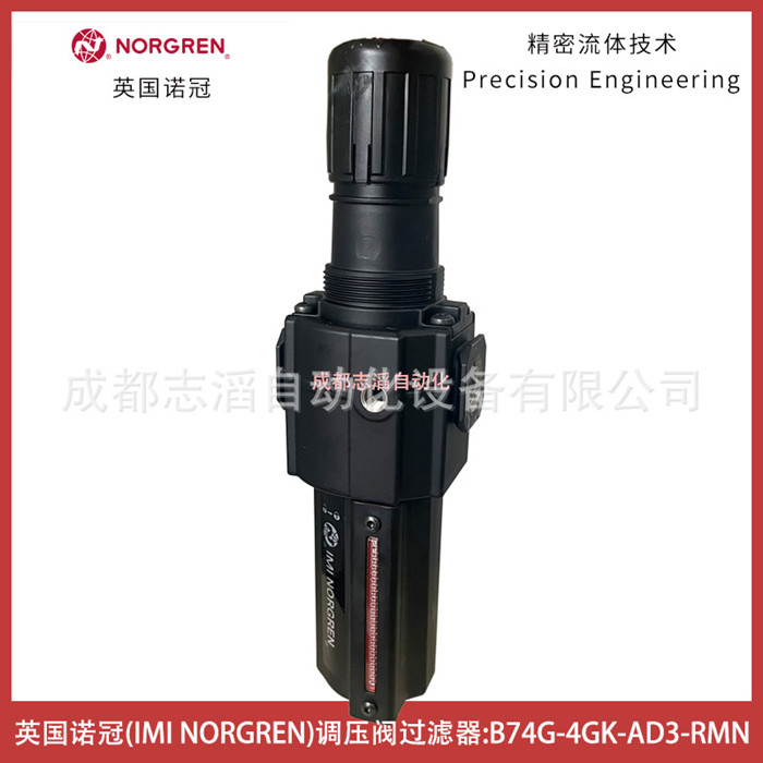 B74G-4GK-AD3-RMN英国诺冠过滤调压阀NORGREN气源处理器技术简介:气口尺寸为G1/2、流量为100立方分米/s、带液位指示金属杯、重量1.25kg、过滤精度为40um、出口压力调节范围为0.3-10bar、不带压力表、膜片为溢流式!